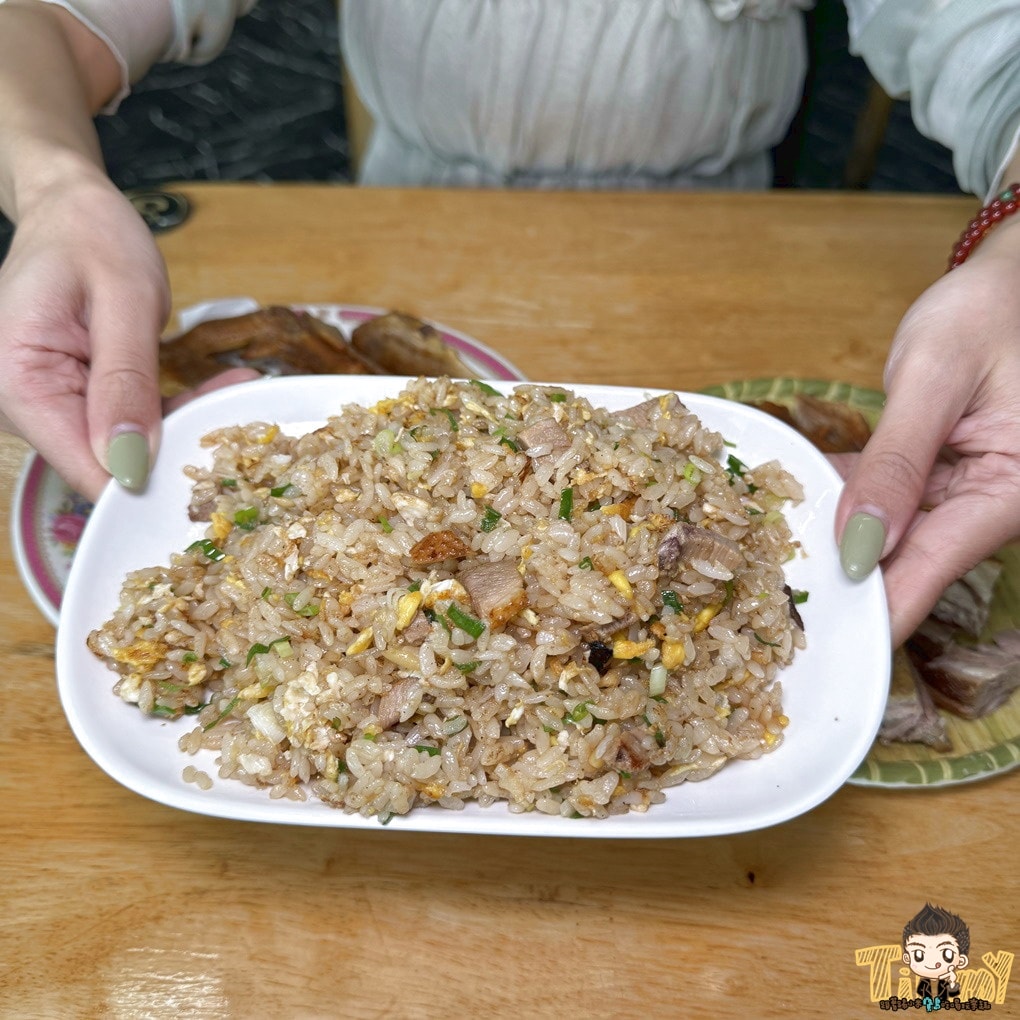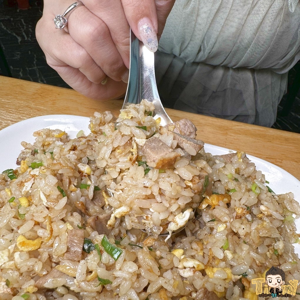 鴨肉炒飯(小90元)鴨肉切塊拌炒,搭配醬油香的炒飯很好吃。