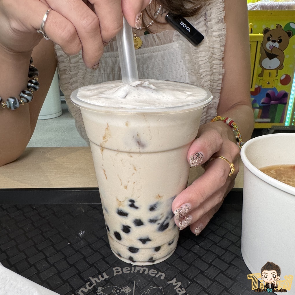 珍珠奶茶很特別,加入奶粉打出綿密的古早味奶茶,奶香特別濃郁,配上珍珠是女士們最愛。