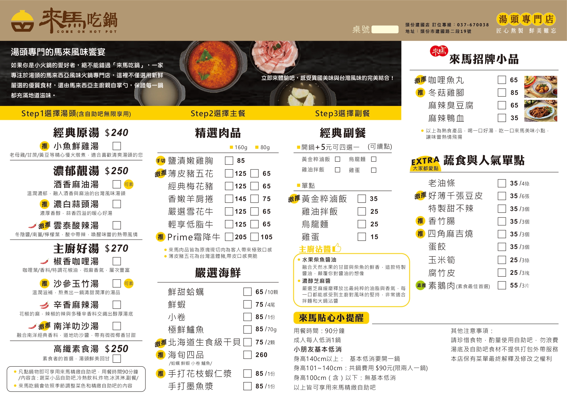 👉來馬吃鍋-建國店菜單目錄搶先看