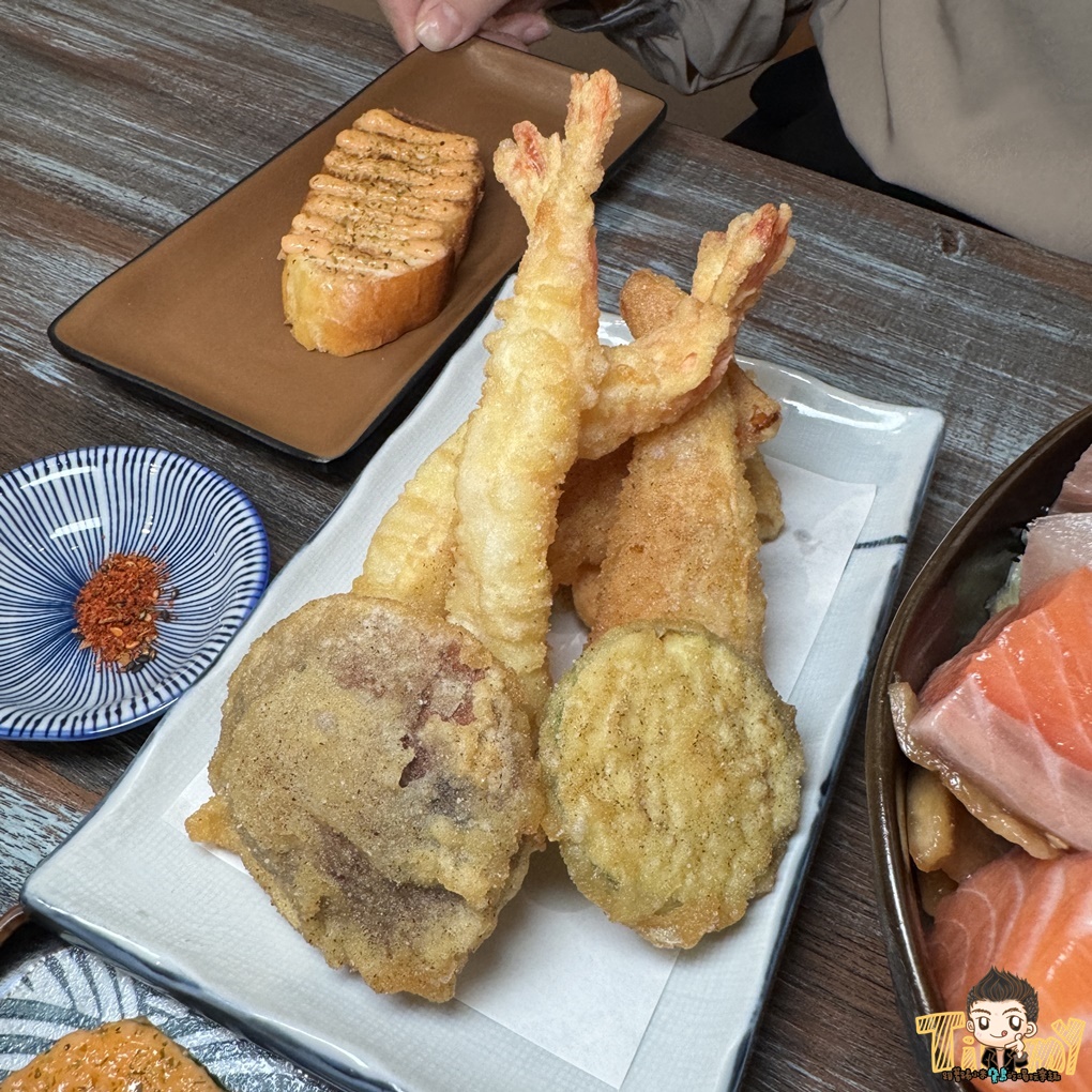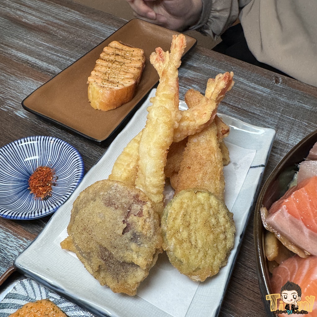 草蝦天婦羅(240元)有炸蝦、地瓜、南瓜、櫛瓜和香菇天婦羅,很配酒🦐