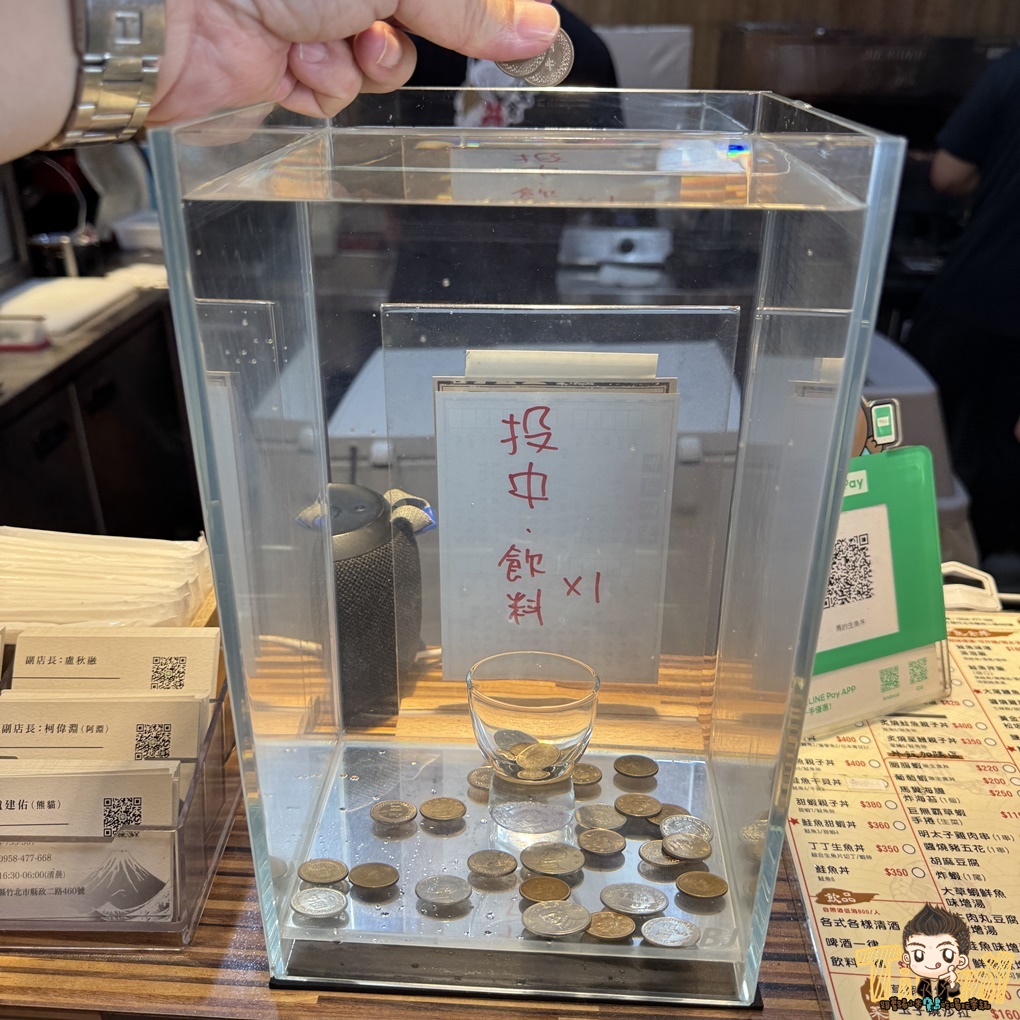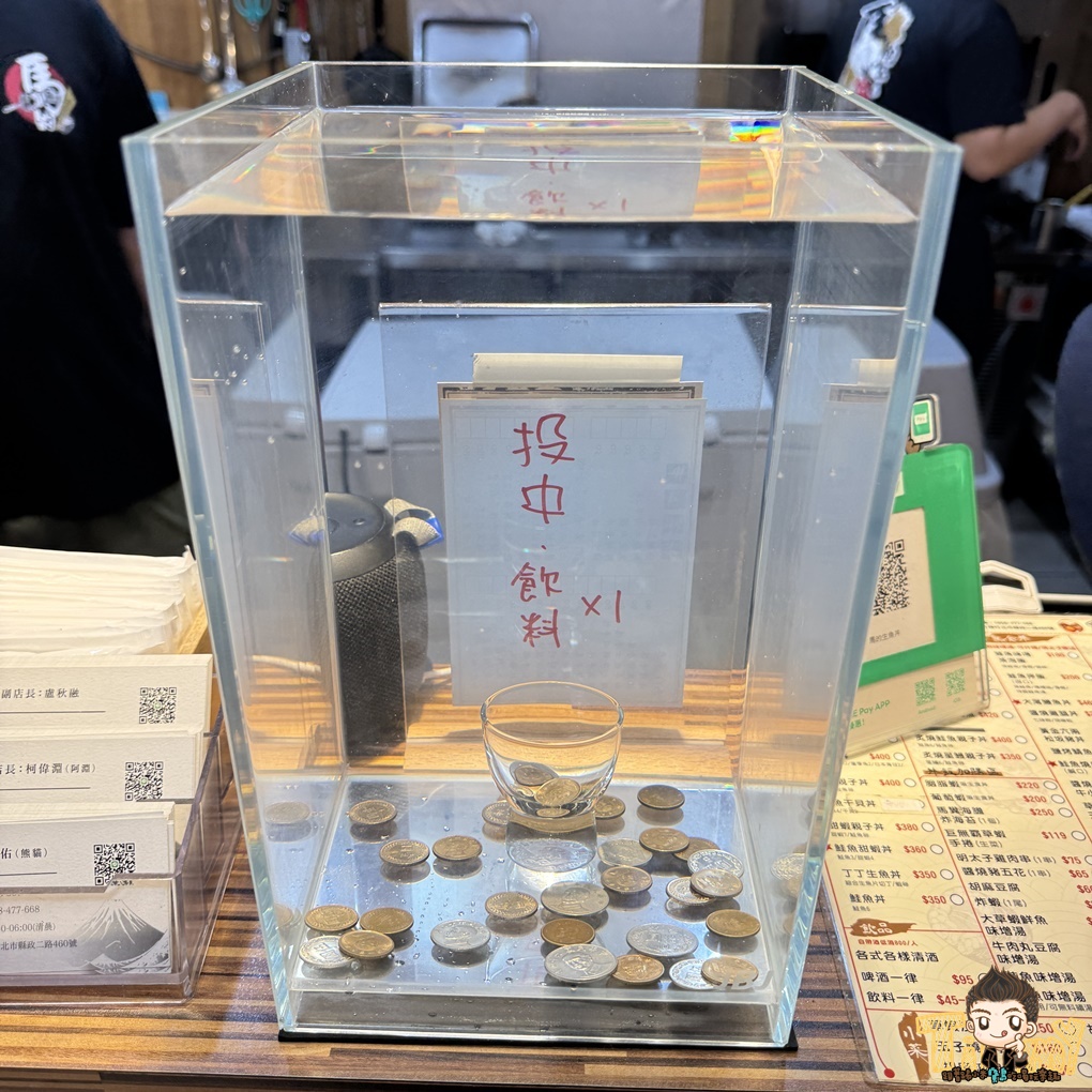 ▶️店家最新推出活動,只要將硬幣投入魚缸的小杯子,就可以兌換一瓶無酒精飲料。