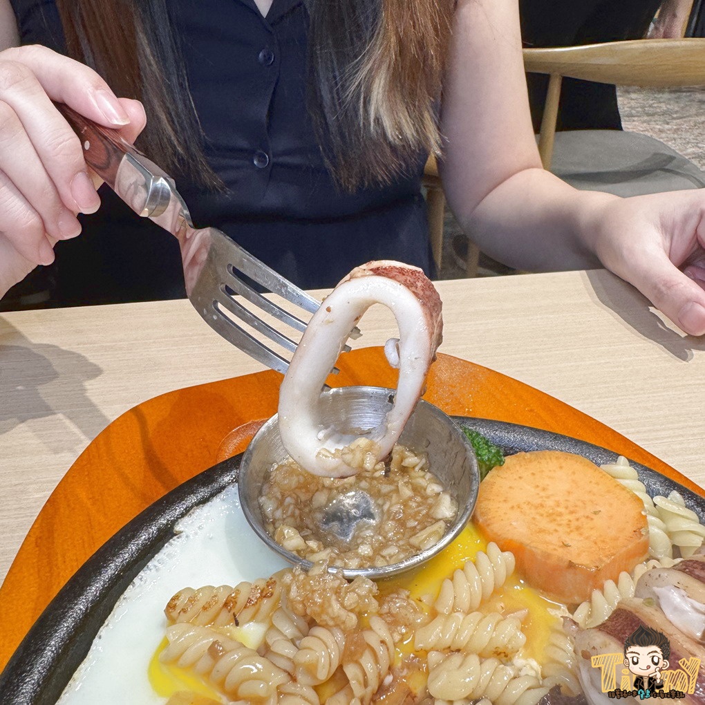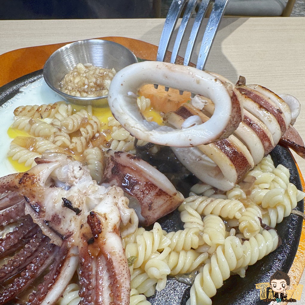 肉類選擇除了牛排外,也有豬排、雞排與海鮮可以搭配,