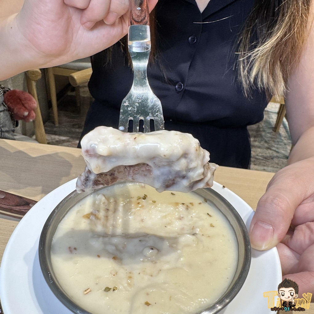 帶點厚度的牛排軟嫩多汁還挺不錯的, 跟你們說一定要沾他們的蒜泥醬真的超香!