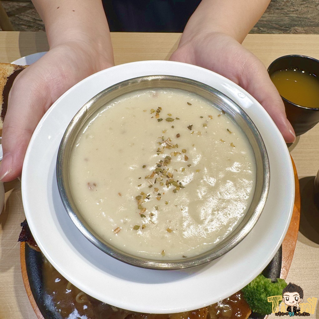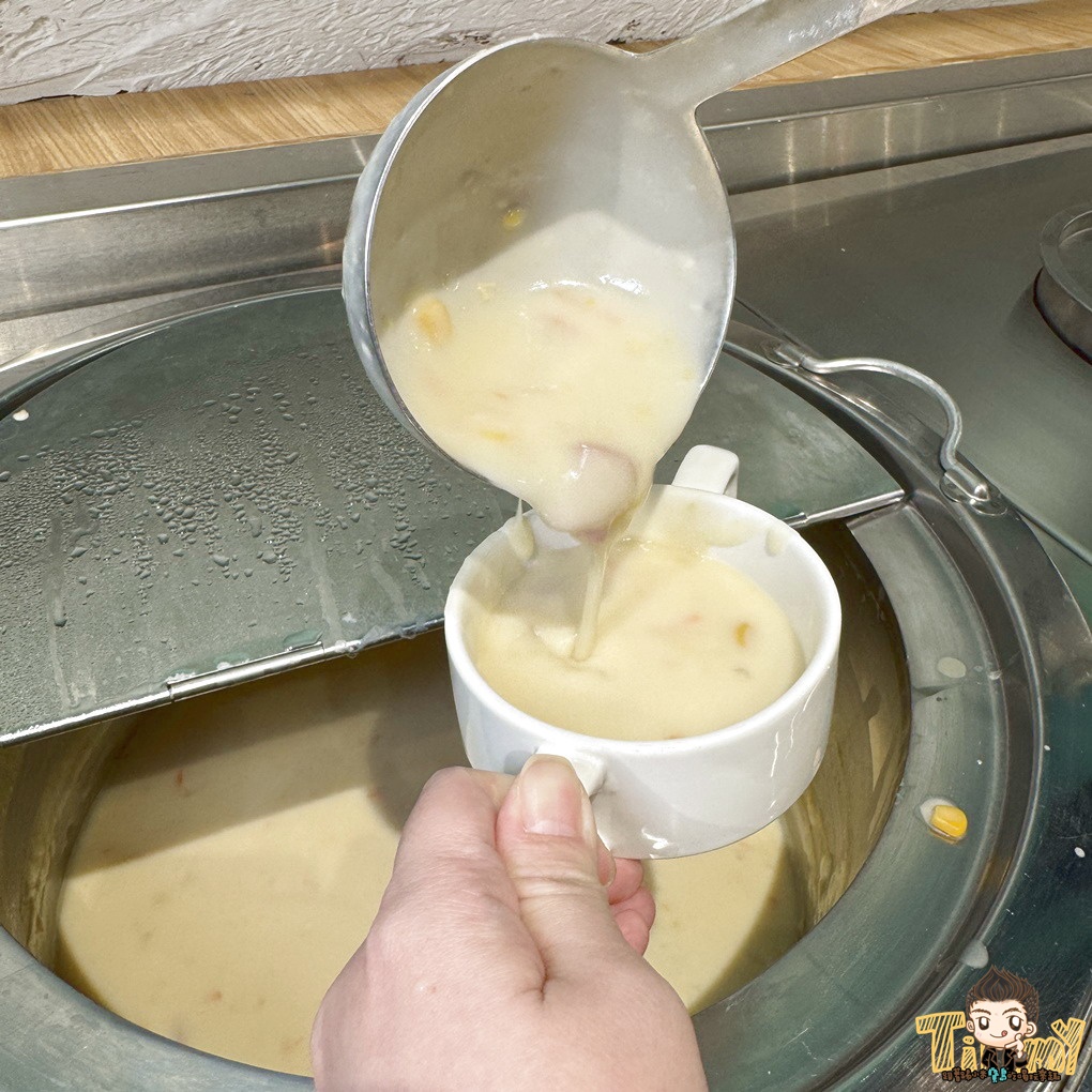 👉玉米濃湯:湯頭濃郁不錯喝,沾麵包超讚。