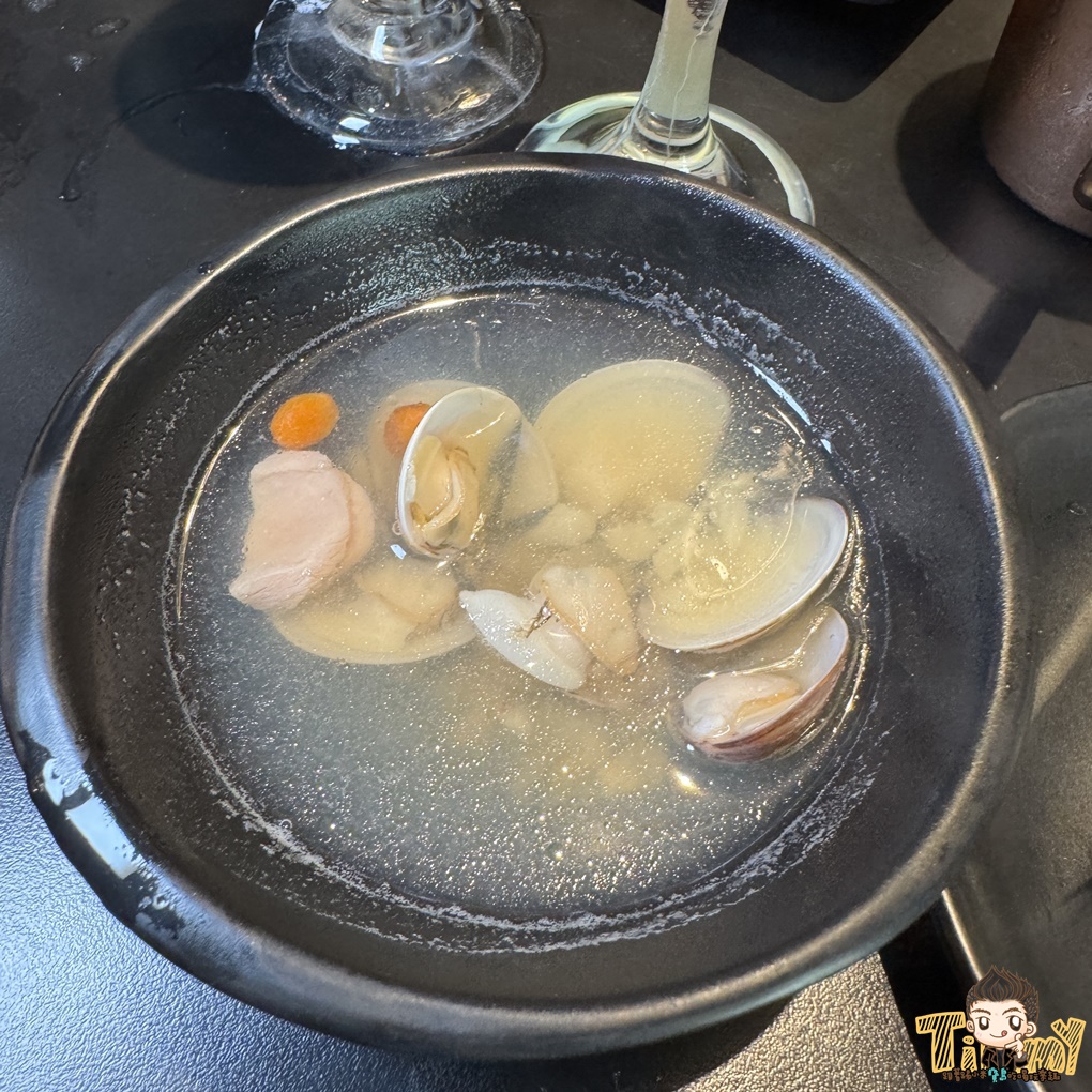 特別推薦卜卜蜆雞腿鍋,有滿滿的蛤蠣、雞腿肉和蒜頭,加入自助吧的花雕雞熬煮後鮮香甜美更有味