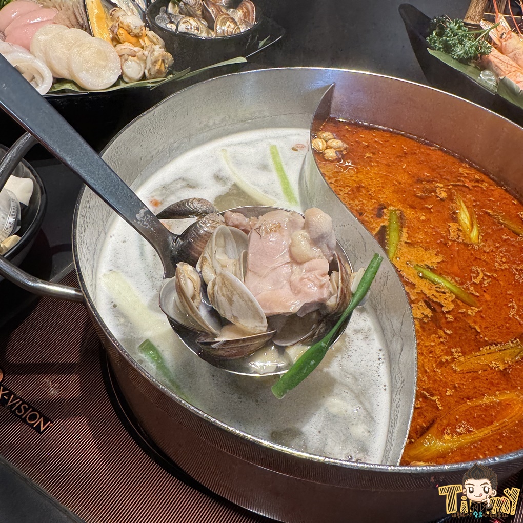 我們今天點的湯底是經典麻辣鍋和卜卜蜆雞腿鍋。