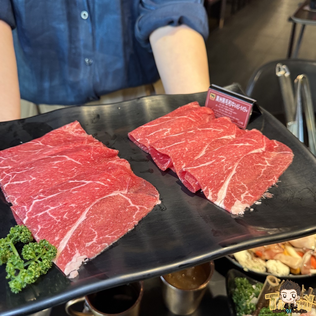 澳洲黑毛和牛M6-M9油花較少,涮個5分熟有嫩中帶甜味的口感,挺不錯的!