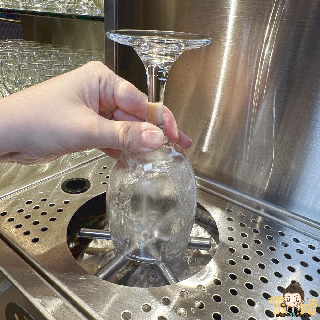 如果想再裝其他口味的調酒,但擔心風味交疊,店家特別設置洗杯機,輕輕一壓即可完成清洗。