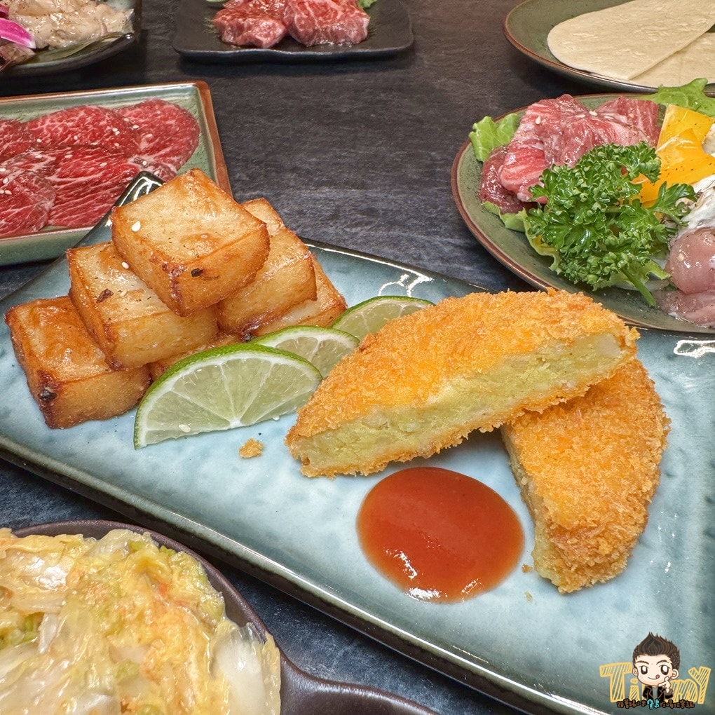 在烤肉之前可以先吃開胃菜,在燒肉店能吃到蘿蔔糕很特別,外層煎得酥脆,鹹香鹹香的很不錯