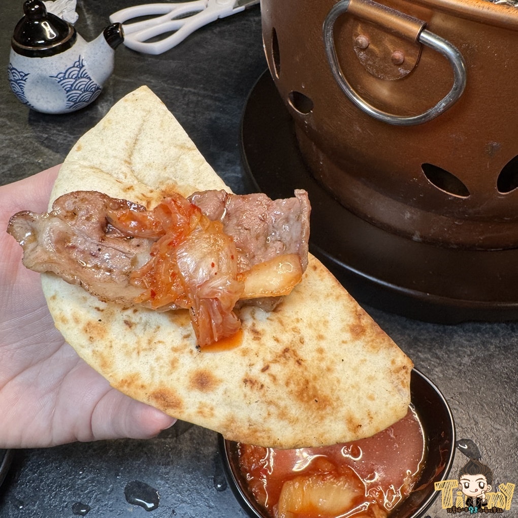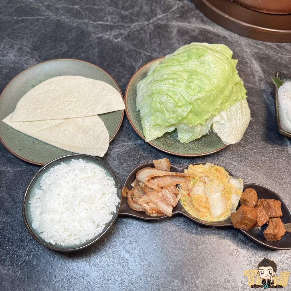 椒鹽梅花豬油花適中,不會過於太油膩,搭配薄餅和韓式泡菜,是截然不同風味的享受。