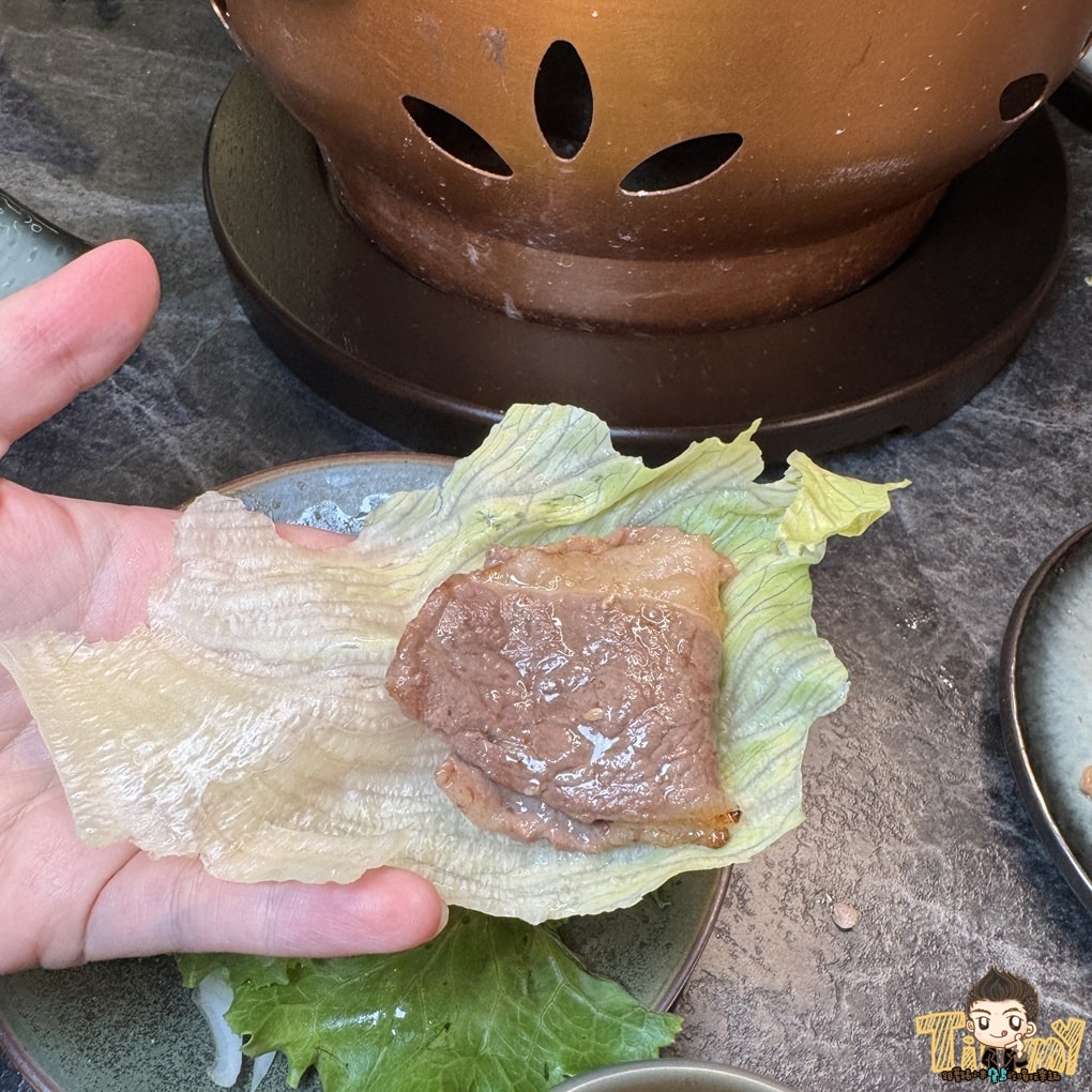 醬燒牛五花,愛吃肥肉的朋友會很愛,烤至5-7分熟,無論是配飯或包生菜都很適合。