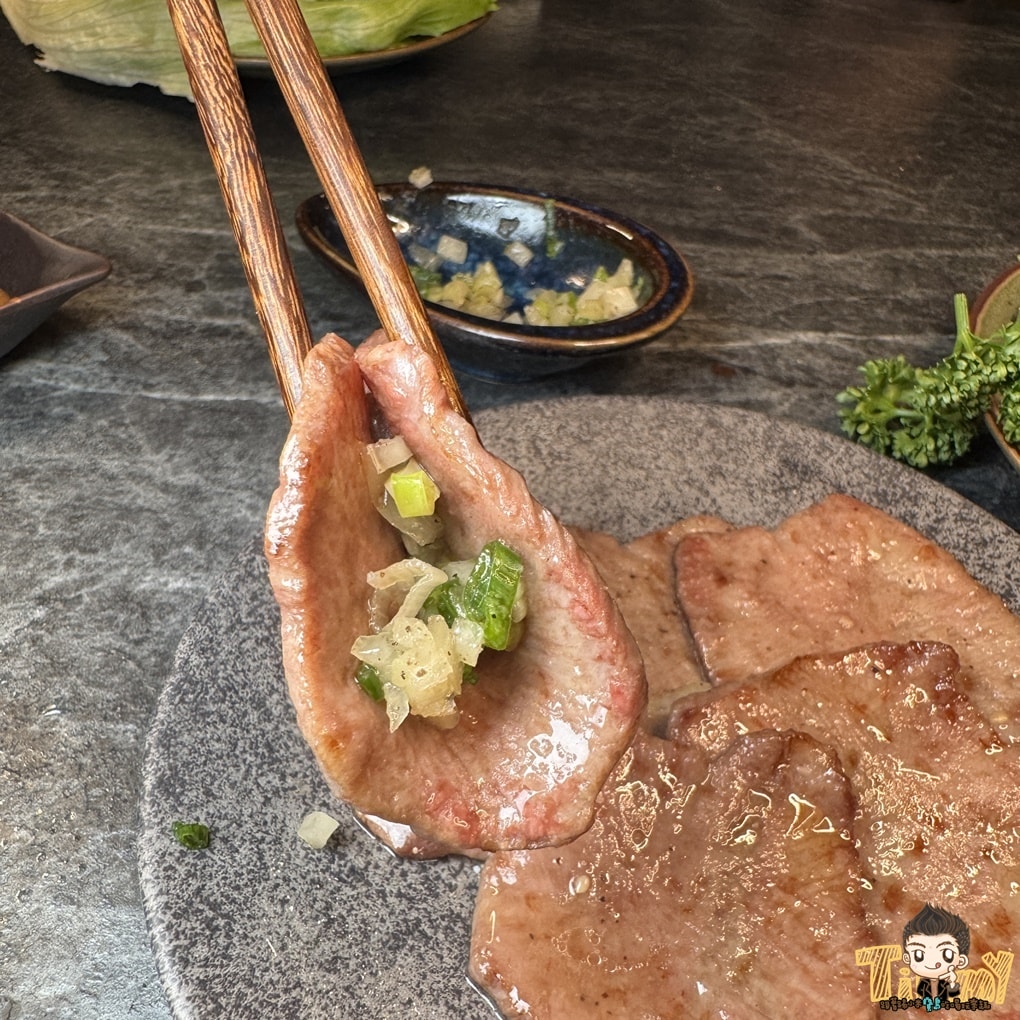 薄切極上牛舌(470元)烤至7分熟,口感軟嫩又帶點脆度,加上蔥鹽提味,多汁又美味!