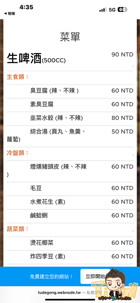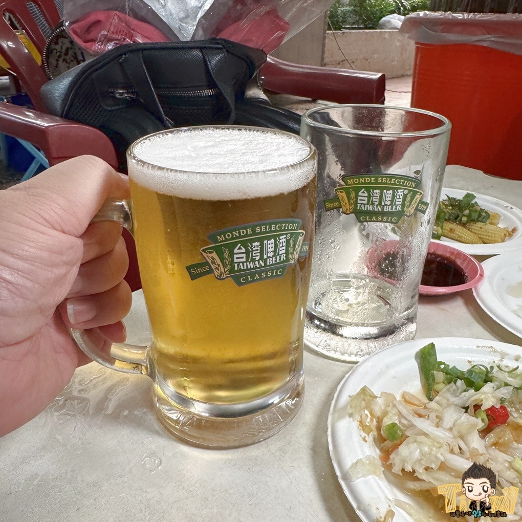 生啤酒500cc(90元)價格不貴,在土地公廟前喝著生啤的體驗很特別🥰