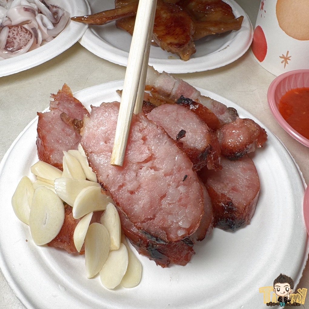 香腸2支(100元)是必點的。肥瘦比例3:7,剛剛好不會太油,帶點油脂甘甜,配蒜頭一起吃超下酒❤️